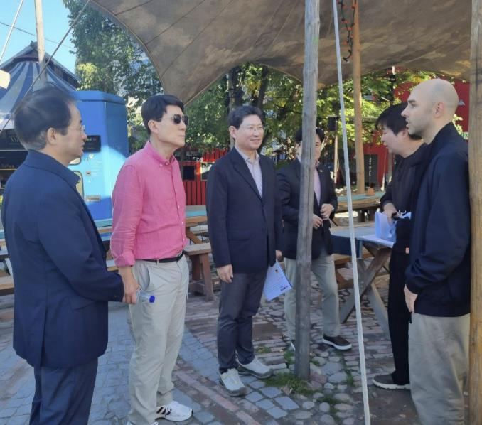 [뉴스앤톡] 이상일 용인특례시장은 대한민국대도시시장협의회 소속 시장단과 함께 7일(현지시간) 독일 베를린에서 시민들이 협동조합 결성을 통해 조성한 대표적인 도시재생 모델 ‘홀쯔막트 25(Holzmarkt 25)’를 방문해 관계자의 설명을 듣고 현장을 살펴봤다.