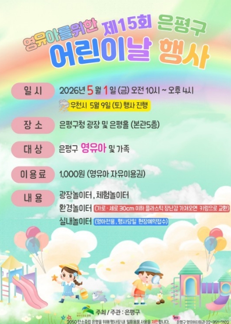 [뉴스앤톡] 서울 은평구는 어린이날을 맞아 내달 1일 은평구청 광장과 은평홀에서 ‘제15회 영유아를 위한 어린이날 행사’를 개최한다고 밝혔다.