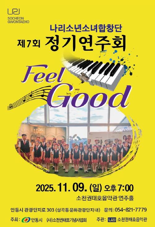 [뉴스앤톡] (사)소천권태호선생기념사업회가 주최․주관하는 ‘제7회 나리소년소녀합창단 정기연주회’가 11월 9일 오후 7시, 소천권태호음악관 실내 연주홀에서 개최된다.
