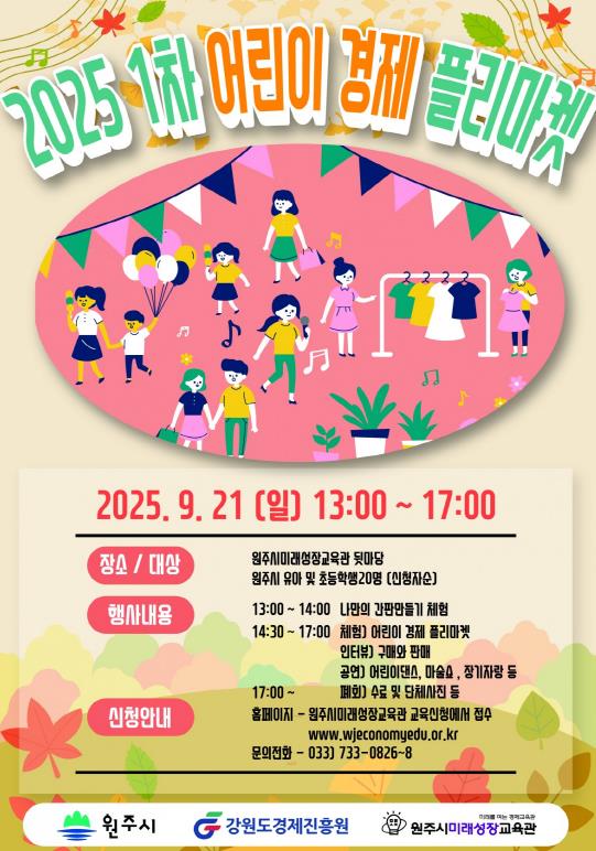 [뉴스앤톡] 원주시미래성장교육관은 가을을 맞아 오는 21일 ‘어린이 경제 플리마켓’을 개최한다.