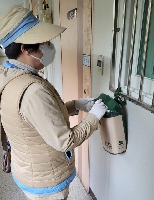 | ▲ 기흥구는 3월부터 ‘중장년 1인 취약가구 일상·자립·연결 지원사업’을 추진한다. 사진은 건강음료배달 모습 |