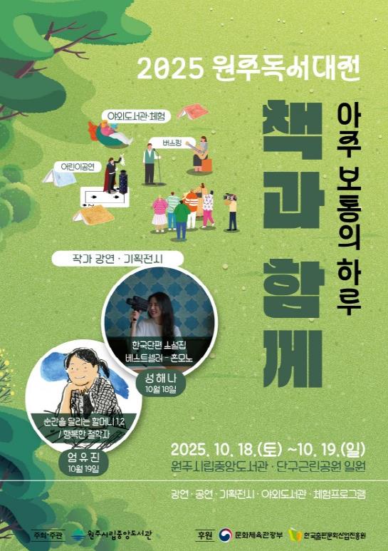 [뉴스앤톡] 원주시는 10월 18일부터 19일까지 2일간 시립중앙도서관 일원에서 ‘2025 원주 독서대전’을 개최한다.
