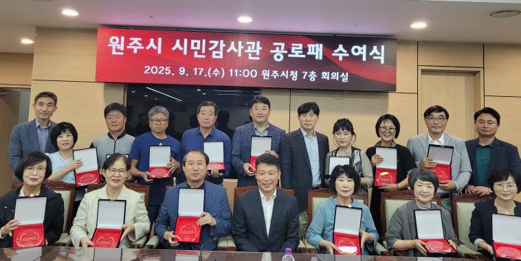 [뉴스앤톡] 원주시는 지난 17일 시청 7층 회의실에서 시민감사관 공로패 수여식을 개최했다.