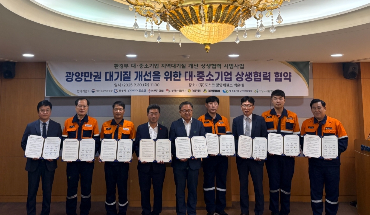 [뉴스앤톡] 전남녹색환경지원센터는 9월 30일 ㈜포스코 광양제철소 백운대에서 ‘광양만권 대기질 개선을 위한 대·중소기업 상생협력 협약’을 체결했다.