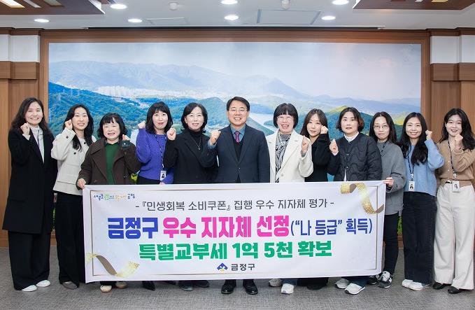 [뉴스앤톡] 부산시 금정구는 지난 10일 행정안전부가 실시한 『민생회복 소비쿠폰』 집행 우수지자체 평가에서 “나 등급”을 획득하며 우수기관으로 선정됐다고 밝혔다.