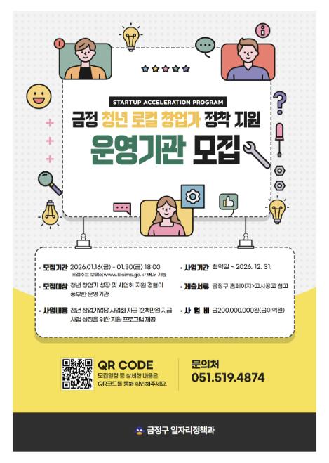 | ▲ 부산 금정구, 청년 로컬 창업가 정착지원 사업 운영기관 모집 |