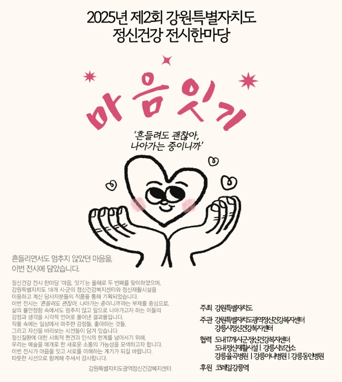 [뉴스앤톡] 강릉시는 10월 13일부터 오는 19일까지 강릉역에서 '2025년 제2회 정신건강 전시한마당'을 개최한다.
