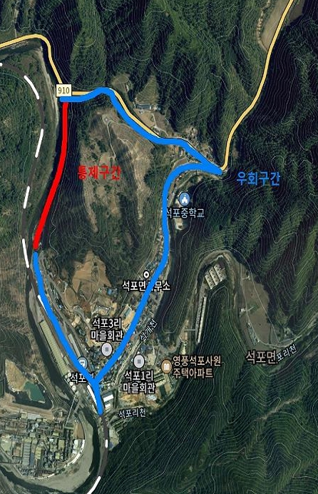 | ▲ 봉화군 석포 불미고개입구~하수처리장구간 4월 8일부터 전면 통제 실시 |