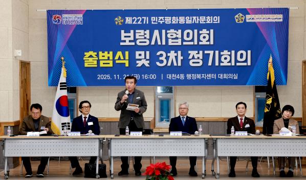 [뉴스앤톡] 민주평화통일자문회의 보령시협의회는 지난 21일 대천4동 행정복지센터 대회의실에서 김동일 보령시장과 정윤 민주평통 충남부의장, 자문위원 등 60명이 참석한 가운데 ‘제22기 출범식 및 2025년 3차 정기회의’를 개최했다.
