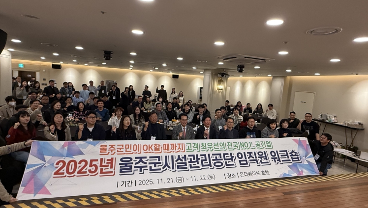 [뉴스앤톡] 울주군시설관리공단(이사장 최인식)은 11월 21일 및 22일 양일간 울산 울주군 서생면 소재 온더웨이브에서, 이순걸 울주군수와 최길영 울주군의회 의장이 참석한 가운데,“전국 NO1.공기업, 그 가치를 위한 시작”이란 슬로건으로, 임직원 120여명이 모여 2025년 임직원 워크숍(이하 “워크숍”이라 함)을 개최했다.