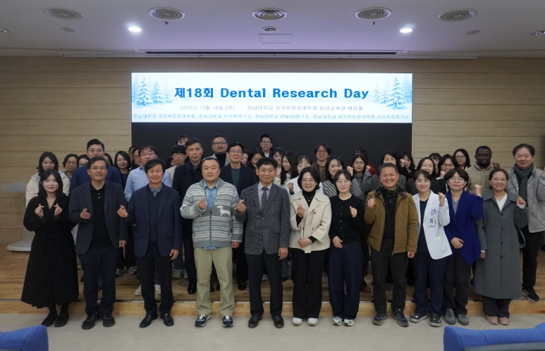 [뉴스앤톡] 전남대학교 치의학전문대학원과 전남대학교 치의학연구소는 12월 18일 교내 임상교육관 5층 평강홀에서 제18회 Dental Research Day 및 제14회 DDS-PhD(복합학위) 과정 연구발표회를 개최했다.