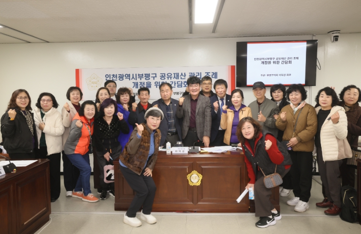 [뉴스앤톡] 인천 부평구의회는 11월 14일 부평구의회 도시환경위원회실에서 이익성 의원(국민의힘, 부평2·5·6, 부개1, 일신동)이 「인천광역시부평구 공유재산 관리 조례 개정」을 위한 간담회를 개최했다고 밝혔다.