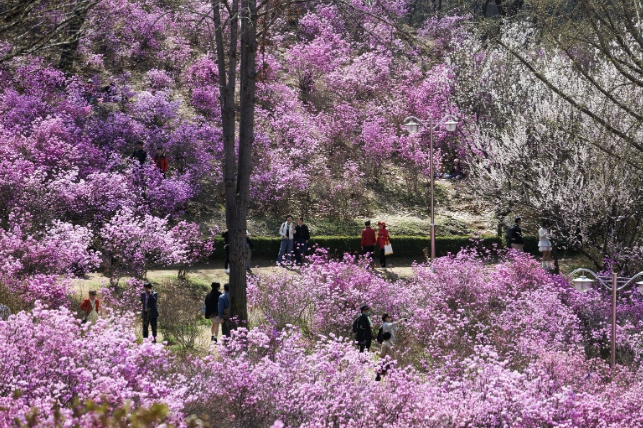 | ▲ 분홍빛으로 물든 원미산 진달래동산에서 시민들이 진달래를 감상하고 있다. |