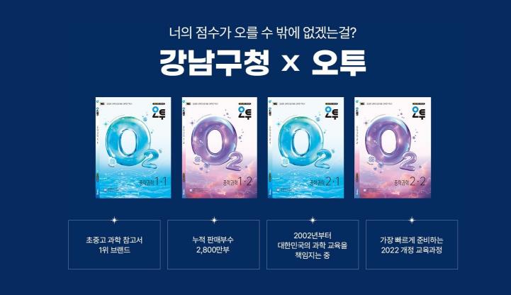 ‘오투 중학 과학’은 2002년 첫 발행 이후 누적 2,800만 권 판매를 돌파한 교재로, 과학 참고서 분야 최고 인기 교재로 꼽힌다. 지난해 8월 실시한 강남인강 선호 교재 설문조사에서 ‘회원이 가장 추천하는 교재’ 1위(51%)를 기록했다.