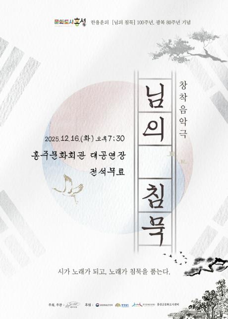 ‘님의침묵’은 문화도시 홍성의 '2025 로컬콘텐츠 예술창작지원사업'에 선정된 작품으로 한용운의 님의 침묵 100주년을 기념해 제작됐으며, 한용운 시인의 삶과 시를 바탕으로 창작된 음악극이다.