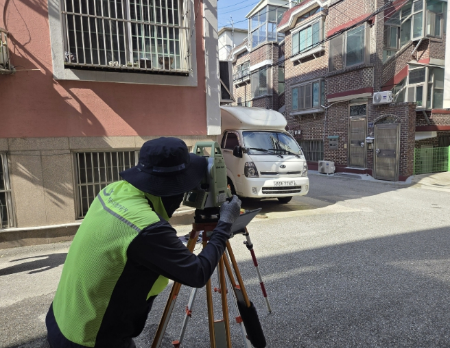 | ▲ 공사 관계자가 지적재조사 측량을 수행하고 있다 |