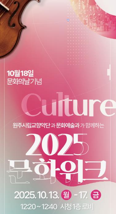 [뉴스앤톡] 원주시와 원주시립교향악단은 10월 18일 ‘문화의날’을 기념해, 10월 13일부터 17일까지 ‘2025 문화위크’를 운영한다.