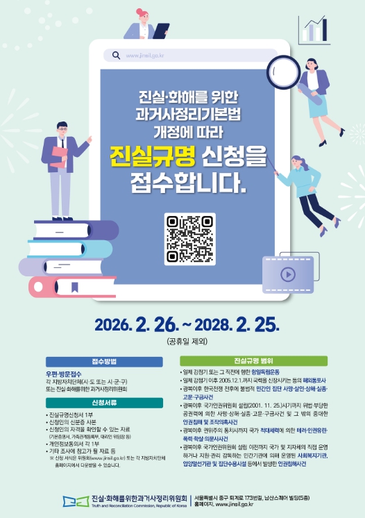 [뉴스앤톡] 예천군은 26일부터 제3기 진실·화해를 위한 과거사정리위원회 출범에 따라, 2028년 2월 25일까지 2년간 과거사 진실규명 신청을 받는다고 밝혔다.