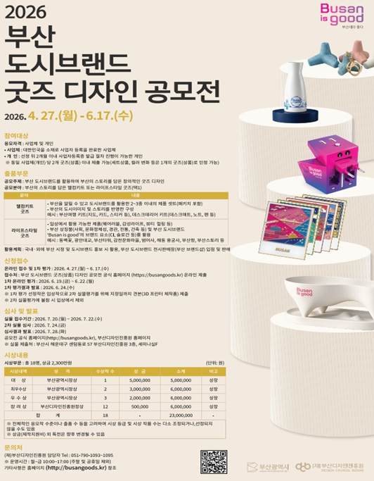 [뉴스앤톡] 부산시와 (재)부산디자인진흥원은 오늘(27일)부터 6월 17일까지 '2026 부산 도시브랜드 굿즈(상품) 디자인 공모전'을 개최한다고 밝혔다.