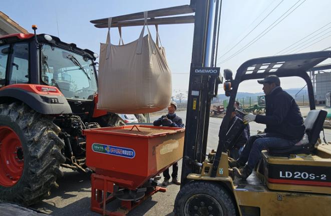 규산질 비료 공동살포는 11일 풍양면을 시작으로 3월 말 지보면까지 완료할 계획이다.
