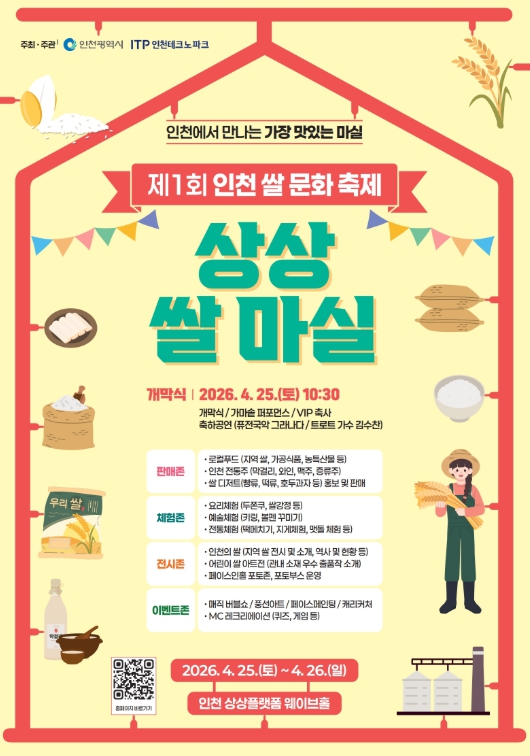 인천TP 관계자는 “상상플랫폼이라는 상징적 공간에서 우리 식문화의 중심인 쌀을 현대적으로 재해석한 축제를 선보이게 되어 뜻깊다”며, “이번 주말 많은 시민이 방문해 인천 쌀의 새로운 맛과 멋을 만끽하시길 바란다”고 말했다.