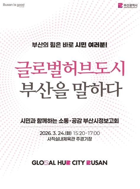 [뉴스앤톡] 부산시는 오는 24일 오후 3시 20분 사직실내체육관 주경기장에서 시민과 지역 주요 인사 등이 참석한 가운데 '글로벌허브도시 부산을 말하다' 시정보고회를 개최한다고 밝혔다.