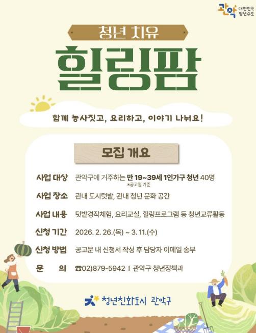 | ▲ 2026년 관악구 청년 치유 힐링팜 홍보 포스터 |