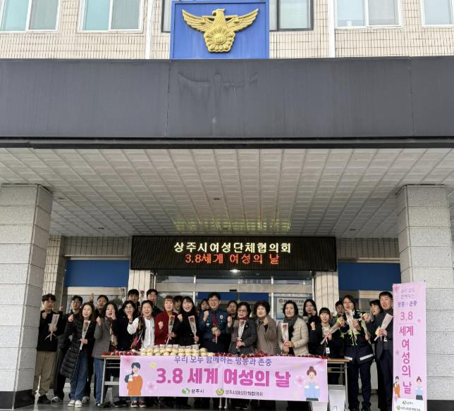 [뉴스앤톡] 상주시여성단체협의회와 상주경찰서는 3월 6일 상주경찰서 1층에서 세계 여성의 날(3월 8일)을 기념하여 빵(참정권)과 장미꽃(노동조건 개선)을 전달하는 캠페인을 진행했다.