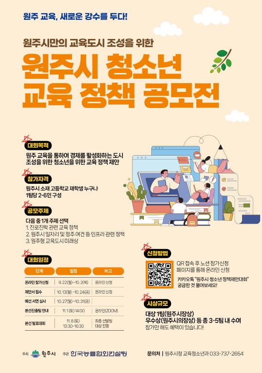 | ▲ 원주시 청소년 교육 정책 공모전 안내문 |