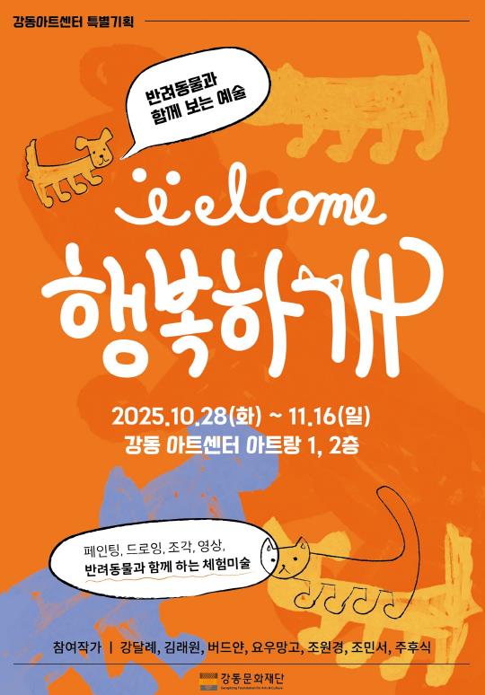 [뉴스앤톡] 강동문화재단은 오는 10월 28일부터 11월 16일까지 강동아트센터 아트랑에서 반려동물과 함께 예술을 경험할 수 있는 전시 《행복하개展》을 선보인다.