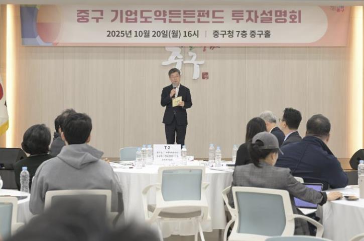 [뉴스앤톡] 서울 중구가 지난 20일 중구청에서 '중구 기업도약든든펀드 투자설명회'를 열고, 성장 잠재력이 높은 중소·벤처기업을 대상으로 투자 유치와 성장 지원 계획을 밝혔다.
