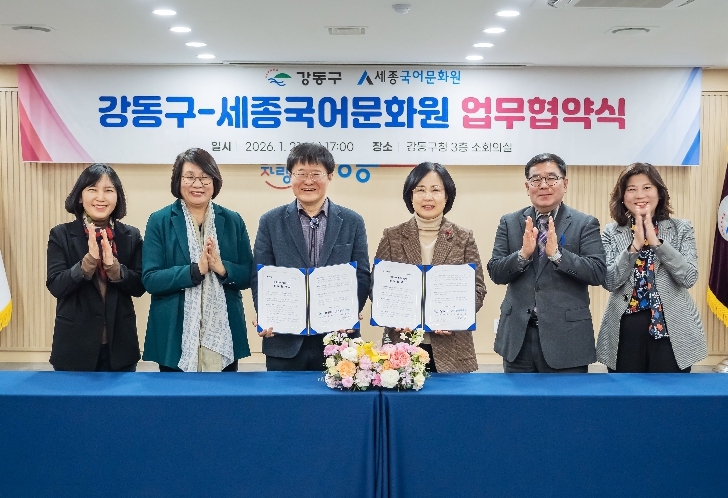 또한, 구는 지난해 문화체육관광부에서 지원하고 (사)국어문화원연합회가 주최한 ‘2025년 국어책임관 활성화 지원 사업’에 참여해 세종국어문화원과 일대일 협의체를 구성했다. 이를 바탕으로 공공언어 개선을 위한 자문·교육·홍보와 한글날 기념행사 등을 공동 추진하는 등 다양한 업무를 수행했으며, 올해 1월에는 양 기관이 업무 협약을 체결하여 앞으로 국어 문화 복지를 실현하기 위한 협력을 확대해 나갈 예정이다.