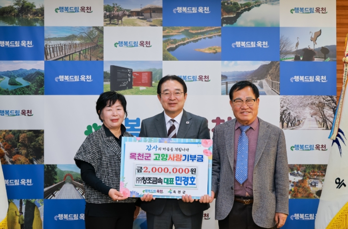 [뉴스앤톡] 옥천군 관내 기업 ㈜창조금속 민경호 대표가 지난해와 마찬가지로 고향사랑기부금 200만 원을 기탁하며 옥천의 발전을 응원했다.