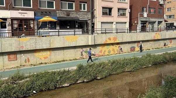 [뉴스앤톡] 방학천(금강아미움 맞은편~방학교) 옹벽 약 360m 구간이 걷고 싶고 머무르고 싶은 산책길로 탈바꿈했다.