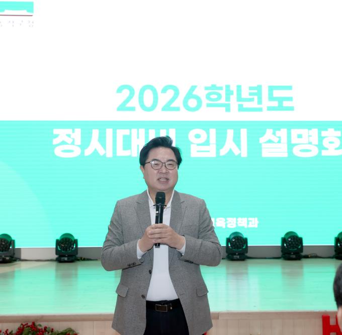 | ▲ 박일하 동작구청장이 지난해 12월 동작구청 대강당에서 열린 ‘2026학년도 정시 대비 입시 설명회’에 참석해 인사말을 하고 있다. |