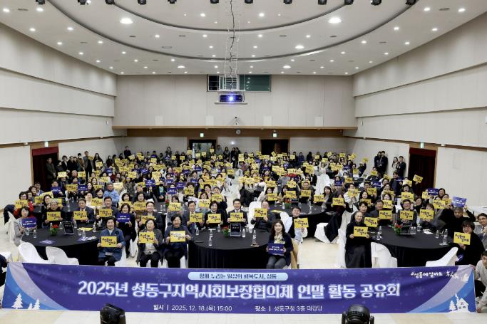 [뉴스앤톡] 서울 성동구는 지난 12월 18일 오후 3시 성동구청 3층 대강당에서 '2025년 성동구지역사회보장협의체 연말 활동 공유회'를 성공적으로 개최했다고 밝혔다.