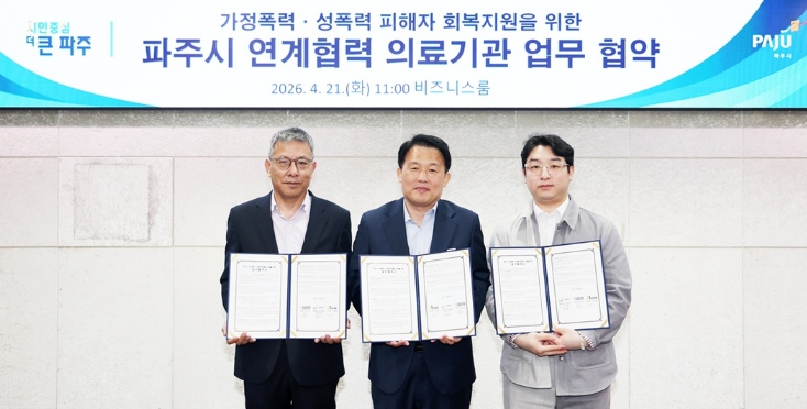 최병갑 파주시 부시장은 “이번 협약을 통해 피해자들이 보다 빠르게 일상으로 복귀할 수 있도록 실질적인 지원을 강화하겠다”라며 “앞으로도 관련 기관과의 협력을 확대해 피해자 보호에 최선을 다하겠다”라고 밝혔다.