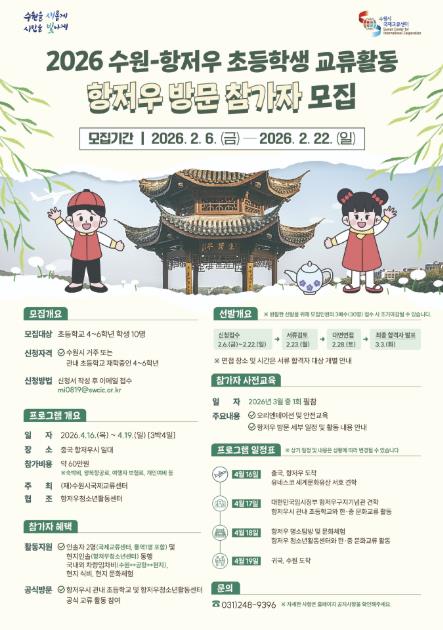 | ▲ ‘2026 수원-항저우 초등학생 상호방문교류’ 참가자 모집 홍보물 |