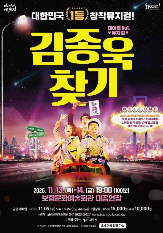 [뉴스앤톡] 보령시가 11월 13일부터 14일까지 이틀간 오후 7시 보령문화예술회관 대공연장에서 뮤지컬 ‘김종욱 찾기’ 공연을 개최한다.