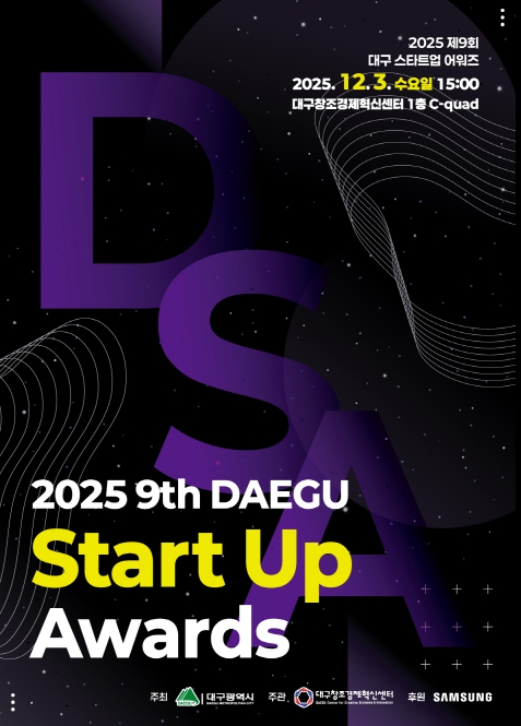 [뉴스앤톡] 대구광역시는 12월 3일 오후 3시, 대구창조경제혁신센터 C-quad(1층)에서 ‘제9회 대구스타트업어워즈’를 개최하고, 지역 창업생태계를 빛낸 우수 스타트업 10개사와 창업지원 유공자 2명을 시상한다.