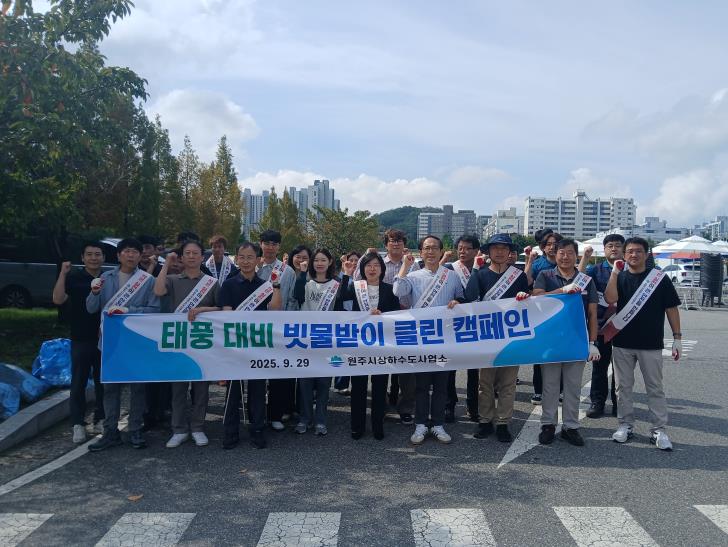 [뉴스앤톡] 원주시상하수도사업소는 쾌적한 도시환경 조성과 건강한 수생태계 보전을 위해 지난 29일 소장을 비롯한 직원 60여 명과 함께 태풍 대비 ‘빗물받이 클린’ 캠페인을 전개하고, 환경부에 하수 중점관리지역 지정을 신청했다.