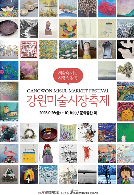[뉴스앤톡] 강원특별자치도는 (사)한국민족미술인협회 강원지회와 함께 '2025년 강원미술시장축제'를 9월 26일부터 10월 1일까지 6일간 남춘천역 1층 문화공간에서 개최한다.