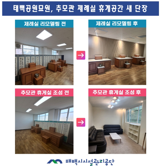 이번 개선 사업은 △추모관 제례실 리모델링 △휴게공간 신설 △2층 안치단 조명 설치 등으로 진행돼 방문객들이 더욱 쾌적하고 안전하게 추모할 수 있도록 했다.