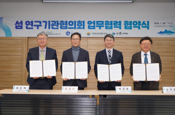 [뉴스앤톡] 기후에너지환경부 산하 국립호남권생물자원관(관장 박진영)은 국립해양유산연구소, 한국섬진흥원, 국립목포대학교 도서문화연구원과 함께 2026년 1월 28일 국립해양유산연구소(전남 목포시 소재)에서 '섬 연구기관 협의회' 출범을 위한 업무협약을 체결했다.