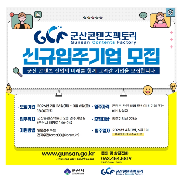 기타 자세한 사항은 군산콘텐츠팩토리 운영지원실로 문의하면 된다.