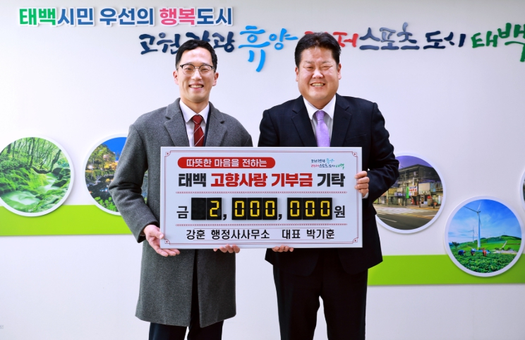 | ▲ 강훈 행정사무소 박기훈 대표, 태백시에 고향사랑기부금 200만 원 기부 |