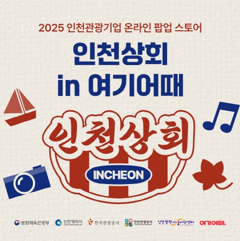 [뉴스앤톡] 인천광역시와 인천관광공사는 국내 대표 여행·여가 플랫폼 여기어때’와 손잡고‘인천상회 특별전’온라인 팝업스토어를 10월 1일부터 11월 30일까지 2개월간 운영한다.