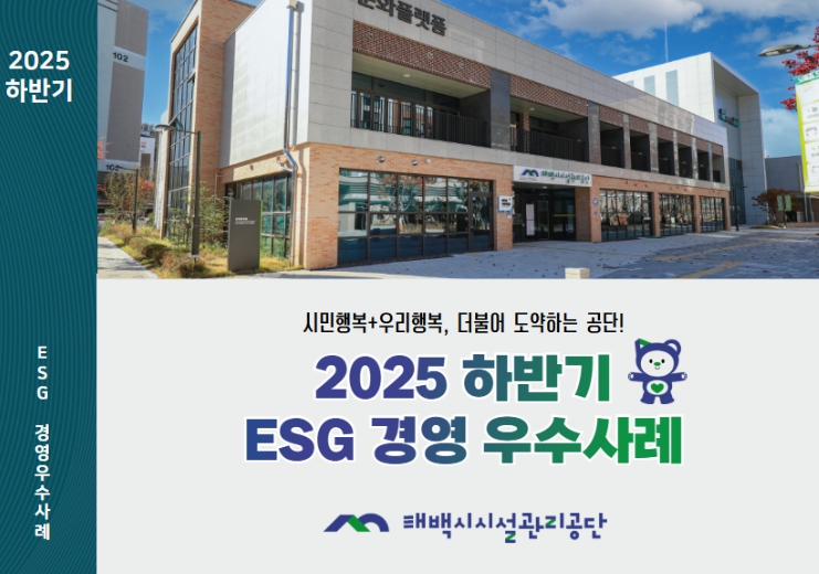 [뉴스앤톡] 태백시시설관리공단은 2025년 하반기 동안 추진한 ESG 경영 주요 정책과 성과를 종합한 '2025 하반기 ESG경영 우수사례집'을 발간하고, 시민 체감형 ESG 경영 실천 사례를 공유한다고 밝혔다.