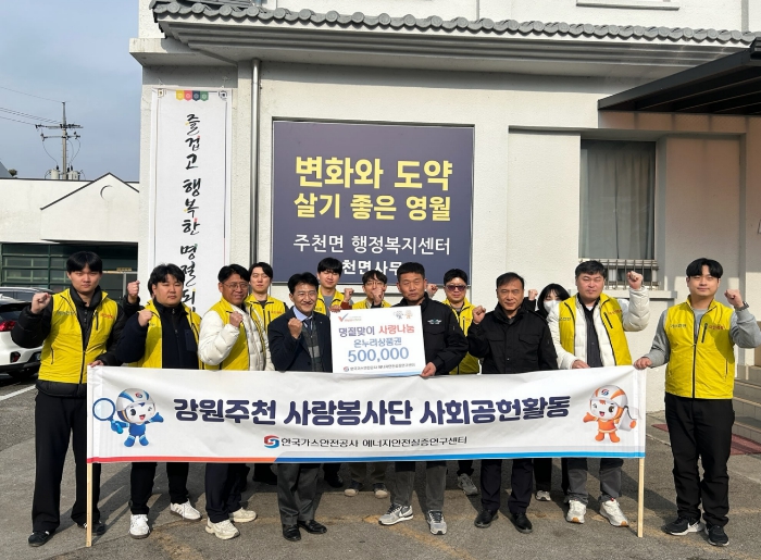 [뉴스앤톡] 한국가스안전공사 에너지안전실증연구센터는 설 명절을 맞아 지역 내 소외된 이웃을 돕기 위해 온누리상품권 50만 원을 주천면사무소에 기탁했다.
