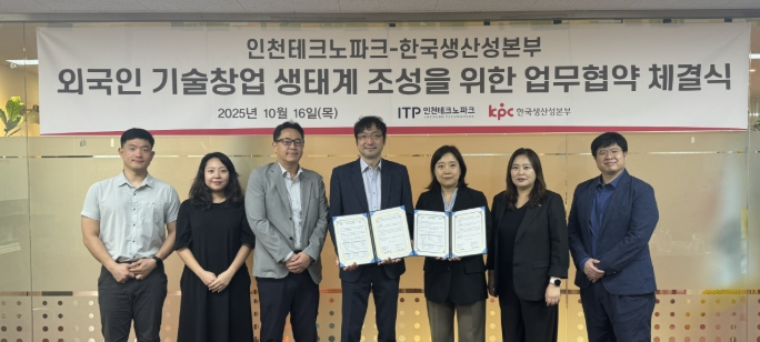 [뉴스앤톡] 인천테크노파크는 지난 16일 한국생산성본부와 ‘외국인 창업 활성화 및 창업 생태계 조성을 위한 업무협약(MOU)’을 체결했다.